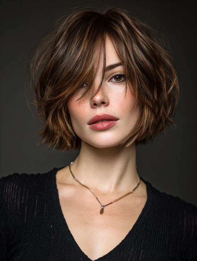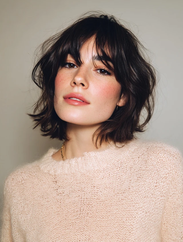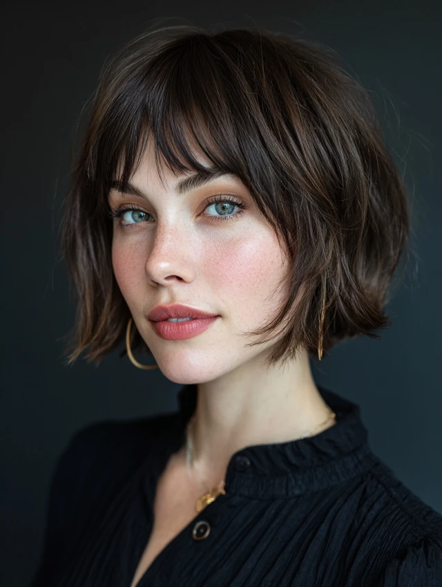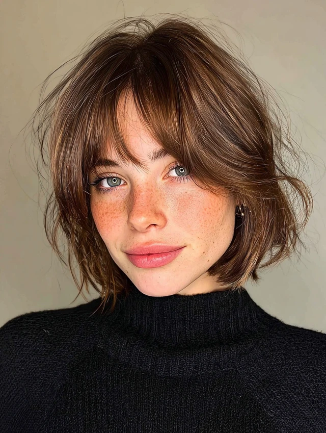3. Bob With Curtain Bangs (Soft & Face-Framing)