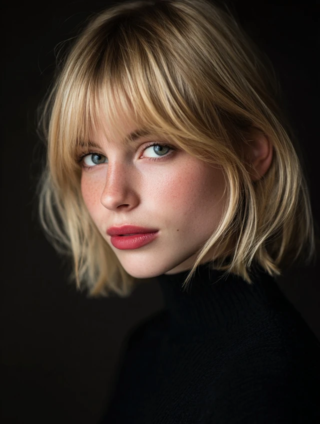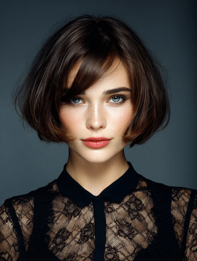 A blunt cut at the chin adds width exactly where thin faces need it, creating a fuller, more balanced appearance.