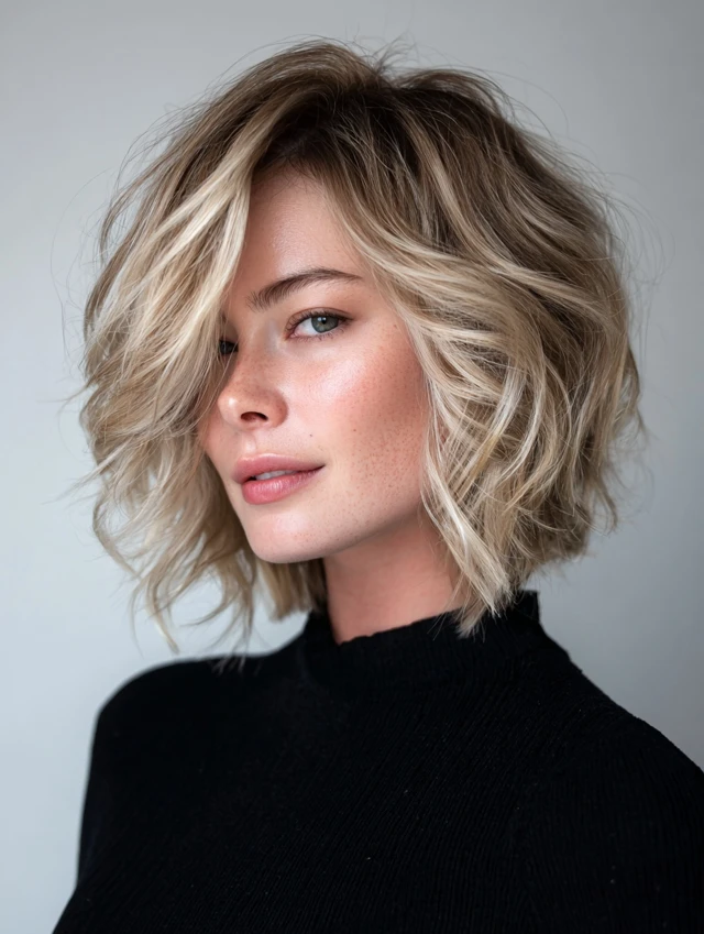 2. Wavy Bob With Soft Layers