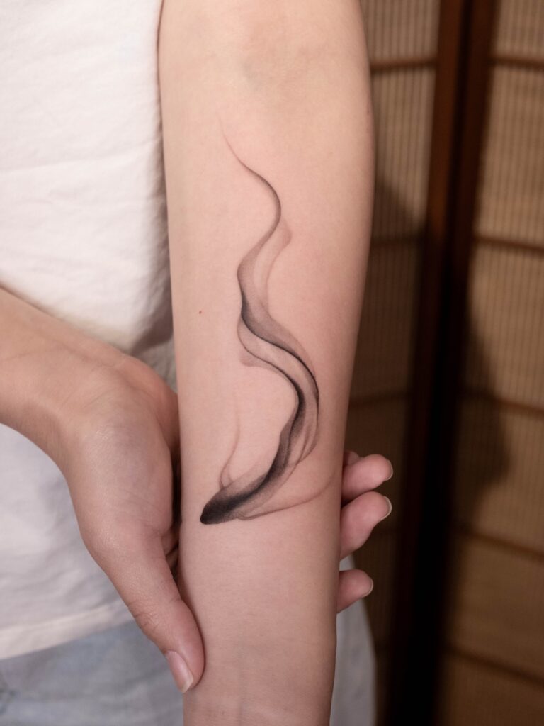This tattoo features a soft, flowing line that moves naturally along the arm, creating a sense of motion and calm. The design is abstract yet intentional, using subtle shading to give depth without overpowering the skin. Its simplicity aligns perfectly with the clean girl aesthetic, emphasizing elegance over complexity.