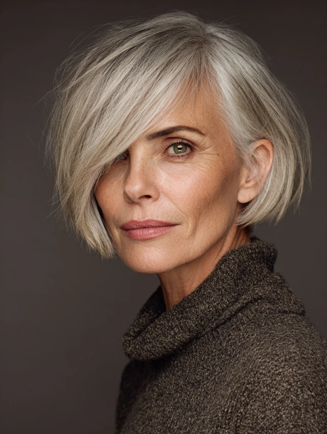 5. Chin-Length Bob With Side-Swept Bangs