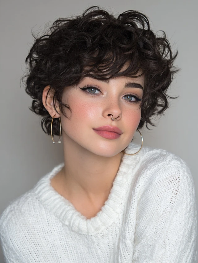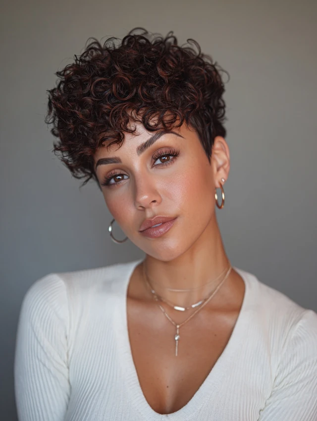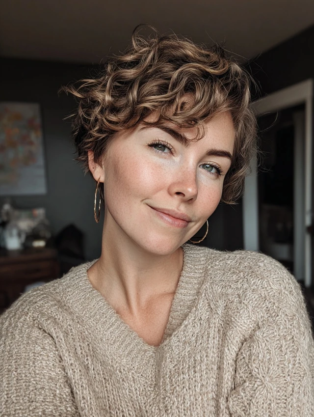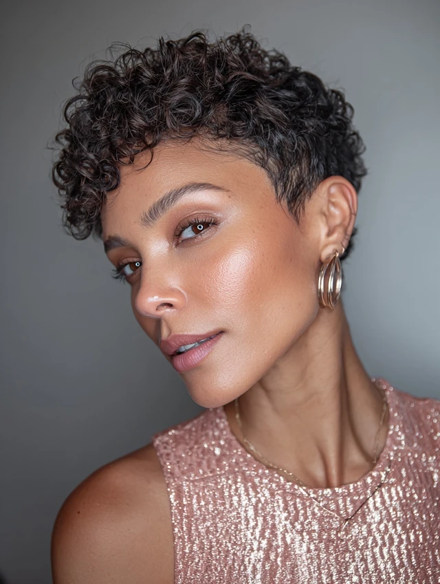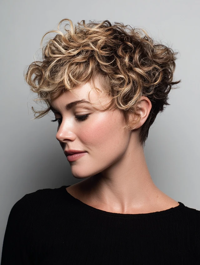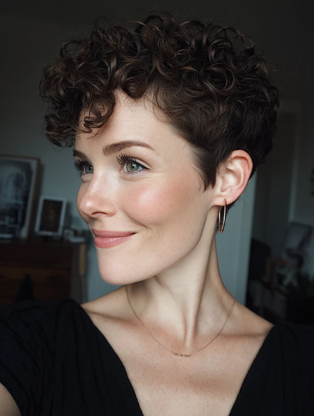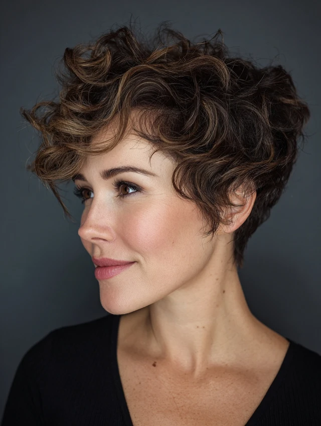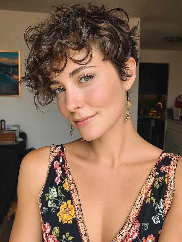 A curly pixie highlights your features instantly.