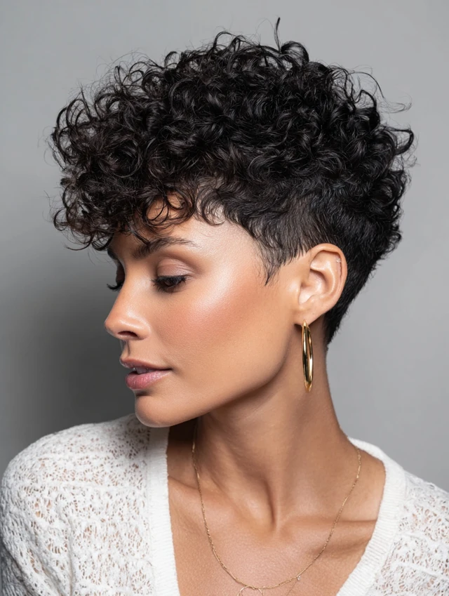 1. Tapered Curly Pixie (Clean & Defined)