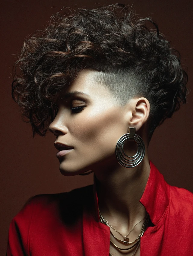Removing bulk at the sides lets curls on top shine while giving the style an edgy, modern twist.