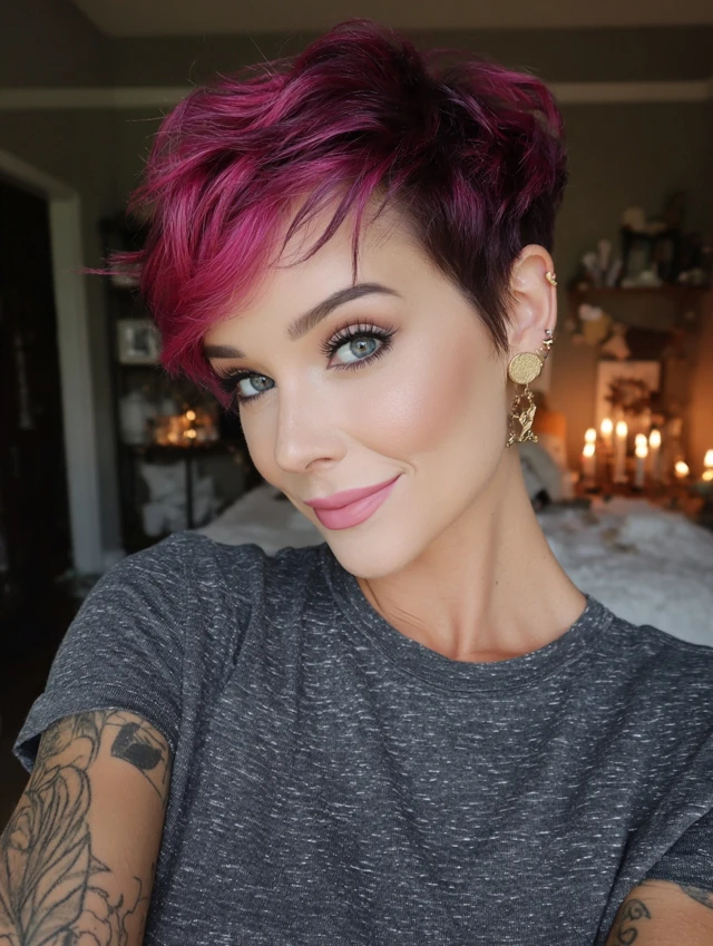 Pixie haircuts are powerful, stylish, and surprisingly flattering for round faces — when done right. The secret lies in adding height, texture, and angles to visually elongate the face and avoid extra width at the cheeks.