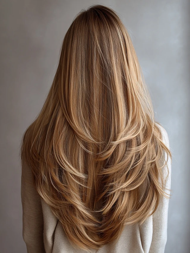 Long hair with invisible layers moves beautifully while maintaining a sleek, expensive look.