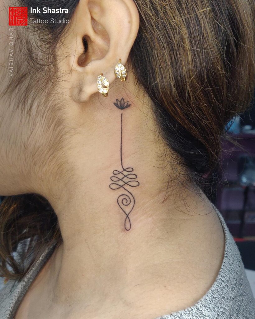 5. Lotus Line Pendant – Behind-the-Ear Tattoo