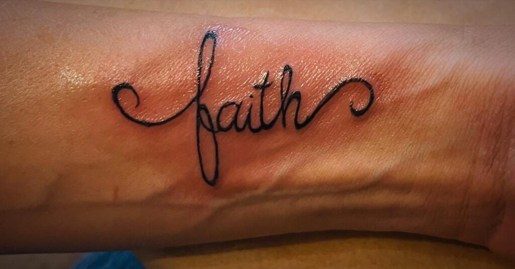 6. Faith Script Forearm Tattoo
