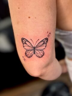 This elegant tattoo features the phrase “and I still rise” in a delicate, slightly slanted script. The fine lines and modest size give it a poetic softness, while the wording carries undeniable strength. Positioned on the arm, it remains visible yet understated.